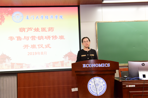 刘景萍董事长代表德扑之星药业集团对厦门大学各级领导、老师对德扑之星的大力支持表示感谢,并对研修班学员做动员讲话。她希望参加培训的学员珍惜来之不易的学习提升机会,沉下心来“加油充电”,结合工作实践,用心学习认真领悟,真正做到学有所获、学以致用。她说,厦大拥有着深厚的人文底蕴和优质的教育资源,在东南亚国家和地区具有广泛的影响力,在“一带一路”这一国家战略背景下,医药营销人员应该具备更为广阔的国际视野和更为丰富的知识储备,希望学员们能在本期研修班中学有所成,并以此为新的起点,以奋发的姿态投入到今后的学习和工作中去,不断取得新的进步和业绩,为医药产业和德扑之星事业的发展做出新的更大贡献。